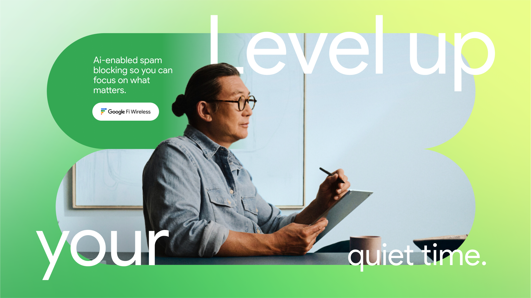 While you’re in the zone — in your flow, buzzing, grooving, focused on right now and what’s next, Google Fi is working its magic, automatically, synchronously, smoothing out bumps, simplifying complexity, connecting you to what calls to you.